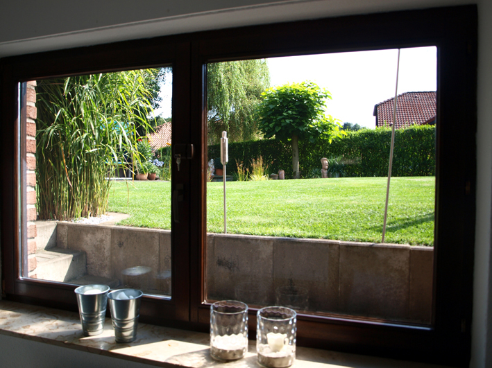 Blick vom Wohnbereich in den Garten