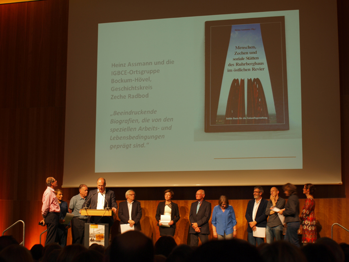 Bei der Abschlussveranstaltung zum Wettbewerb vor fast 600 Gästen und Preisträgern im Forum des Gelsenkirchener Hans-Sachs-Hauses, wurde das Autorenteam um den langjährigen Hammer Gewerkschaftler und Politiker Heinz Assmann und seinen drei Co-Autoren Oskar Baumgärtel und Arthur Ensenbach (Geschichtskreis Zeche Radbod und IGBCE Ortsgruppe Bockum-Hövel) aus Bockum-Hövel sowie Peter Voß (Regio-Verlag) aus Werne für Ihre fachkundige Veröffentlichung durch eine kompetente Jury geehrt.