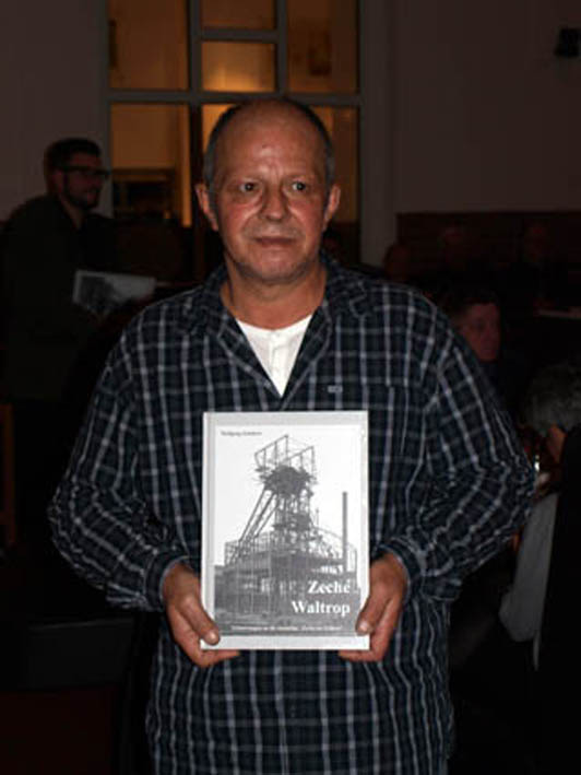Wolfgang Schubert stellte sein neues Buch über die Zeche Waltrop in der ehmaligen Lohnhalle vor.